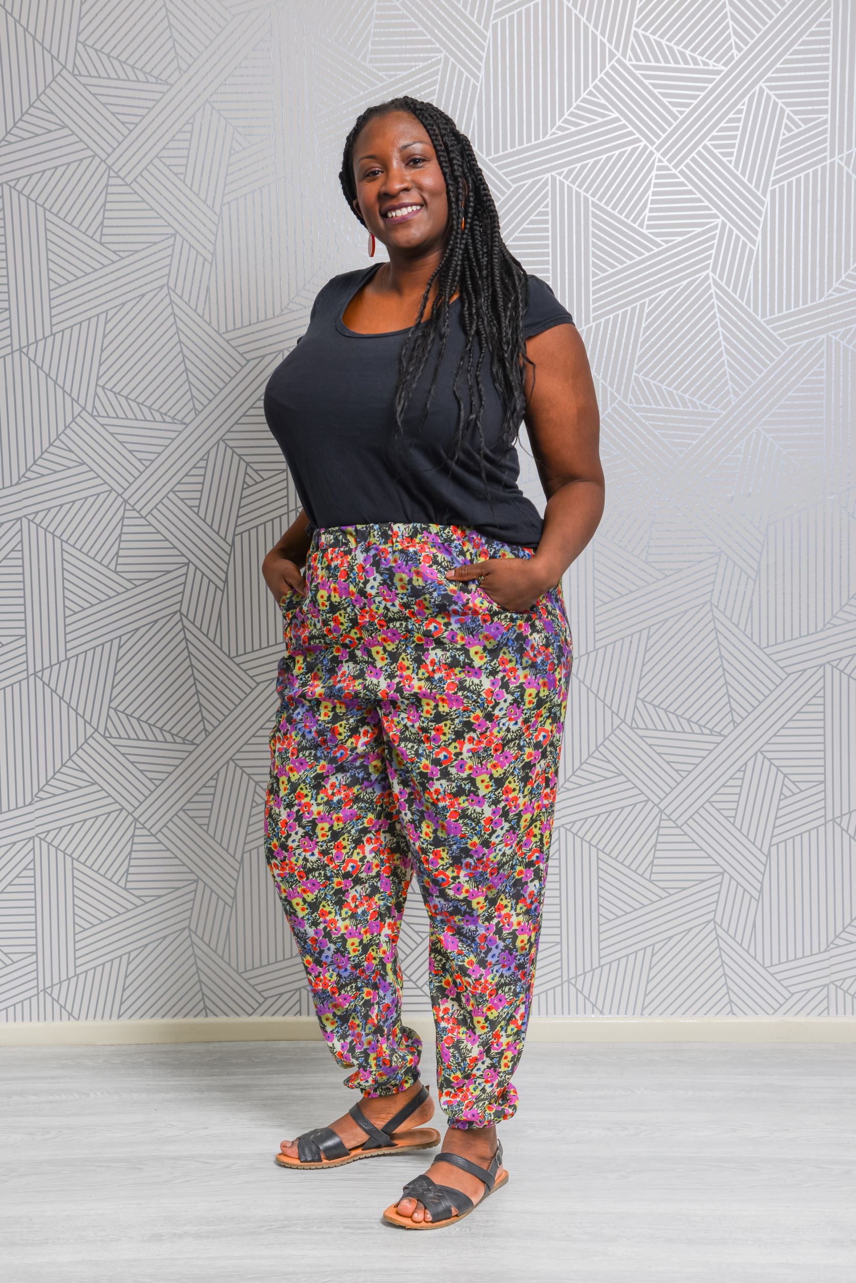 Super comfy and extra hard working as both casual or formal wear, the Alice Trousers were our first ever trouser pattern. Inspired by the cosy, comfortable style of joggers and yoga pants, these trousers can be made from cool cotton or light weight lawn for a spring-to-summer addition to your home-sewn wardrobe. The trousers feature deep cutaway pockets and an elasticated waist for ease of movement. The pattern also features elasticated ankle cuffs, but they can always be made with a simple hem for a slightly more formal look.