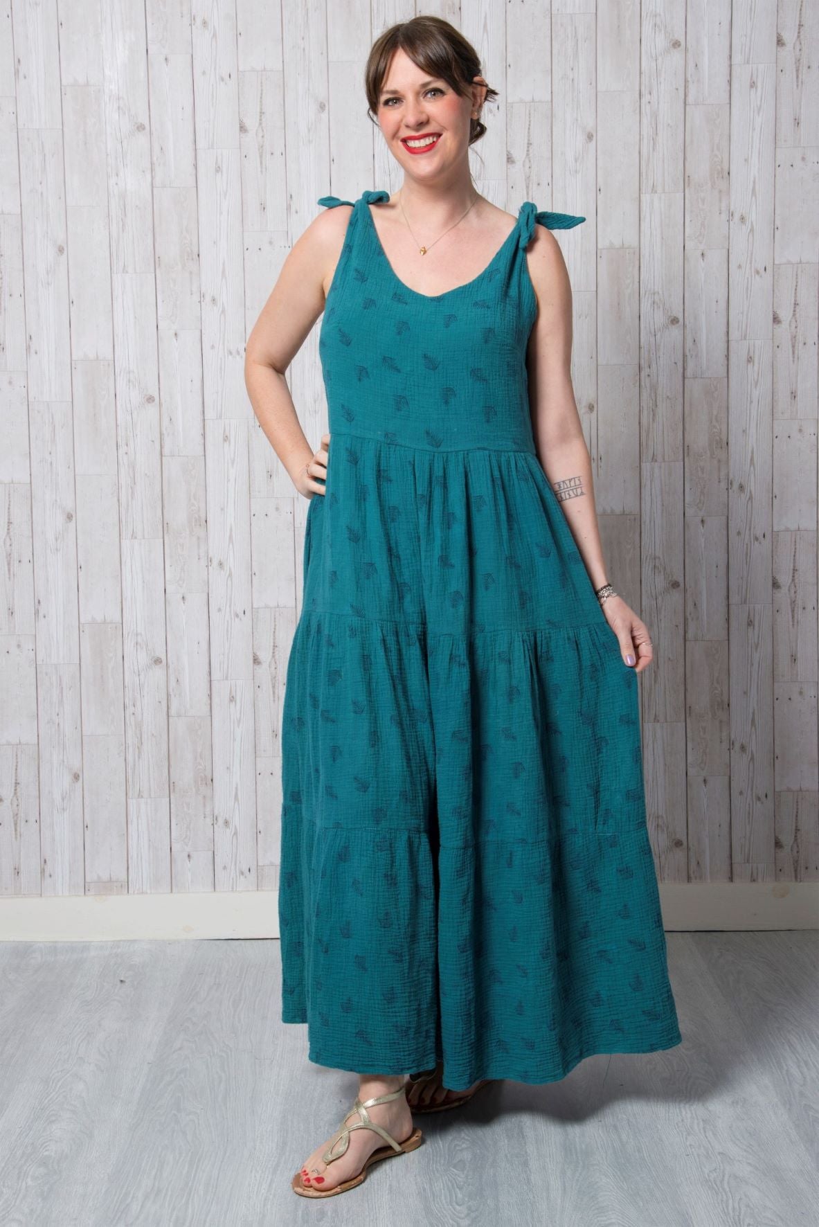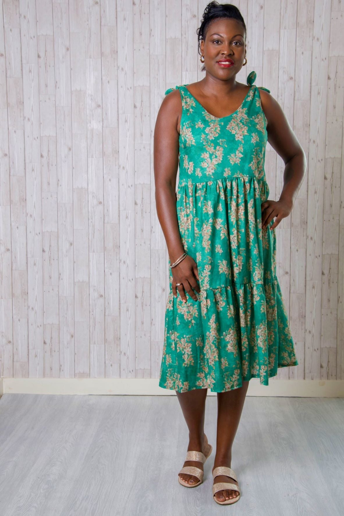 The Emporia Cassie is a loose fitting, flowing summer dress designed to keep you cool in the heat. Perfect for popping on post-beach or wearing out for a picnic, the dress is based on a t-shirt style bodice, with gathered skirt layers, in your chosen length. Go short and swishy or full length and maxi for a boho effect. Alternatively you could wear it over a long sleeved t-shirt and leggings in the colder months. The dress can also be made with tie straps for hotter weather in classic sundress style.