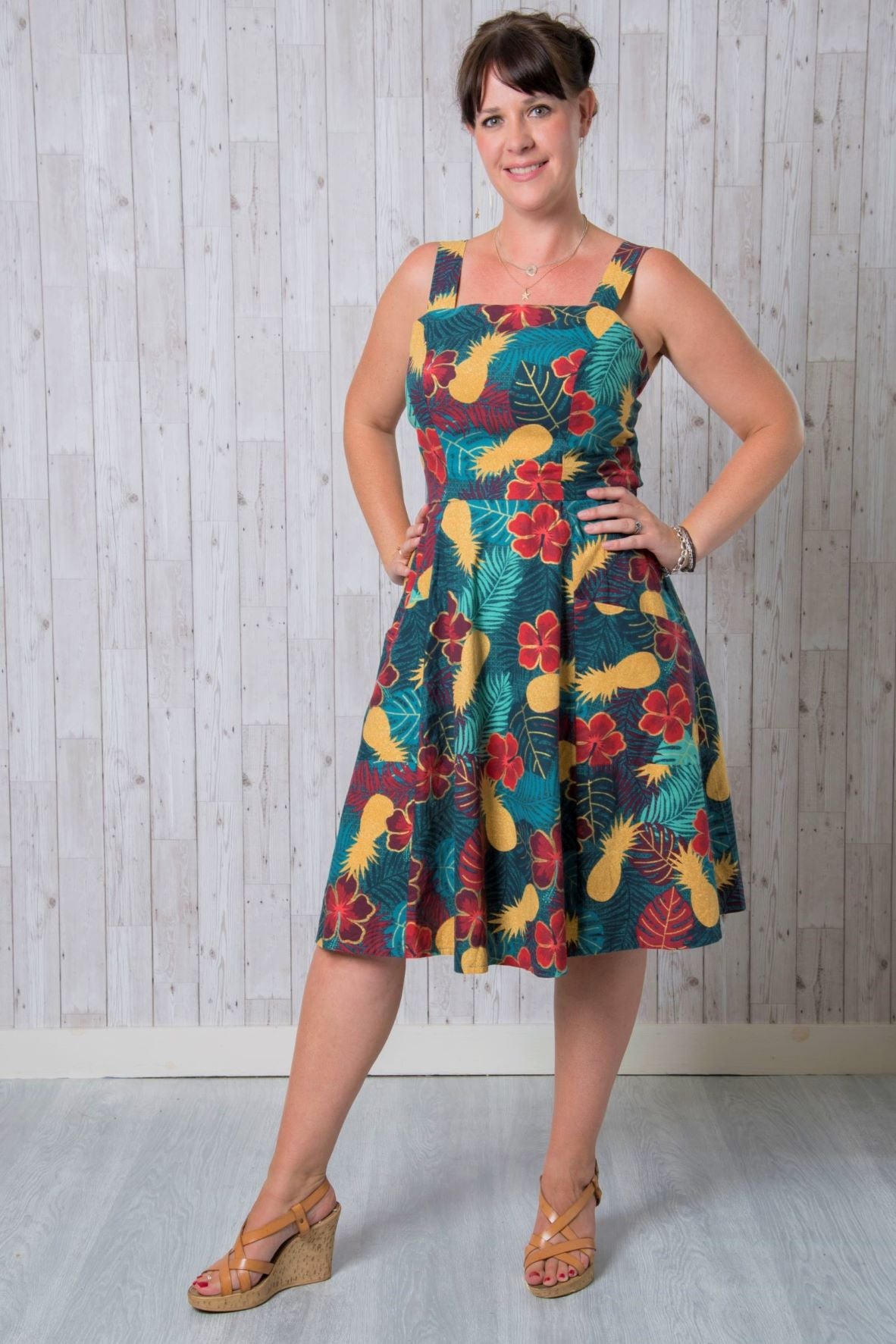 The Emporia Florence is a classic sundress with an exciting extra feature – an open tie-back! Featuring a fitted bodice with princess seams and chunky straps, and a flared panelled skirt, Florence allows you to adjust your fit easily as the tie-back accommodates your bust ease, and an elasticated waist at the skirt back allows for comfortable ease. Big patch pockets on the skirt give you plenty of space to keep your phone or your purse handy and make a fabulous design feature too.