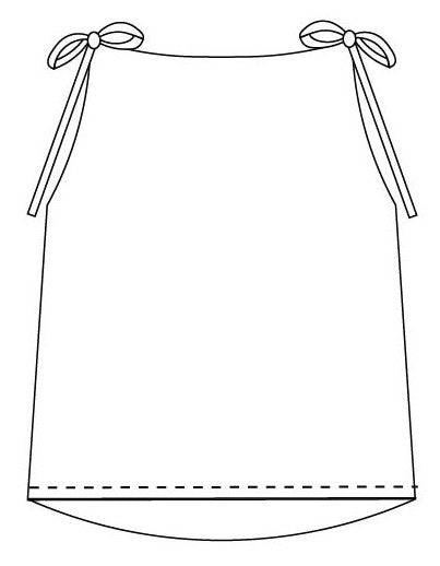Cotton, cotton sateen, viscose, silk, broderie anglaise, chambray, cotton dobby, poplin; double gauze can be used for the body of the top/dress but is too thick for the straps, so an alternative fabric or ribbon may be substituted.
