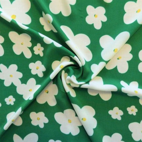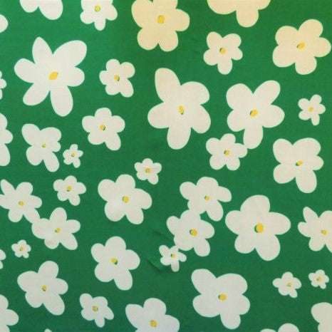 Lady McElroy Viscose Challis Dancing Daisies in Green 50cm Remnant
