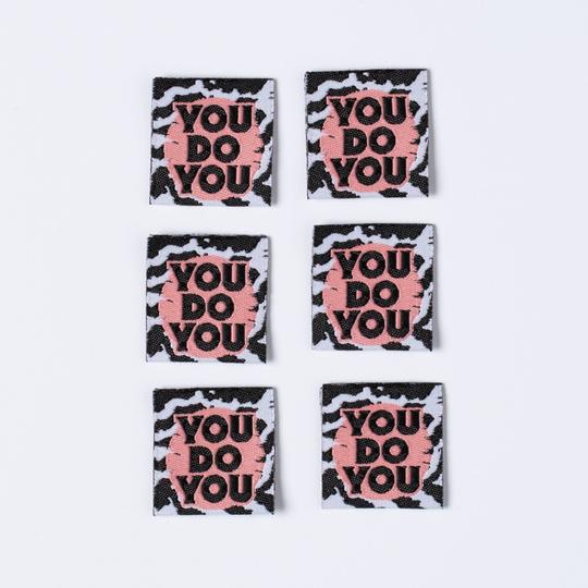 You Do You woven in black thread on a coral circle, on top of a black and white zebra print background. This label is designed with a centre fold and can be sewn in to a garment, bag, craft project or quilt. Ideally this style of label would be sewn into a seam, neckband or facing but can also be top stitched along the top.